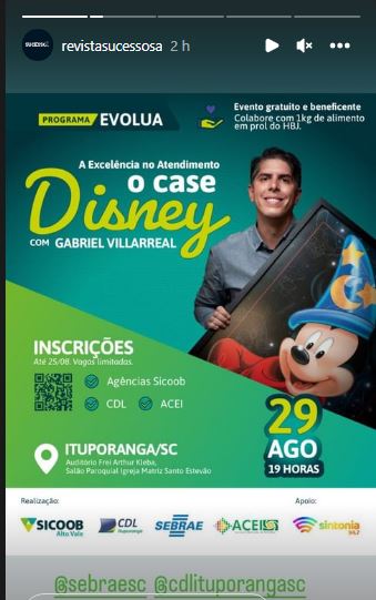 Metodologia de negócio da Disney é tema de encontro gratuito em Ituporanga