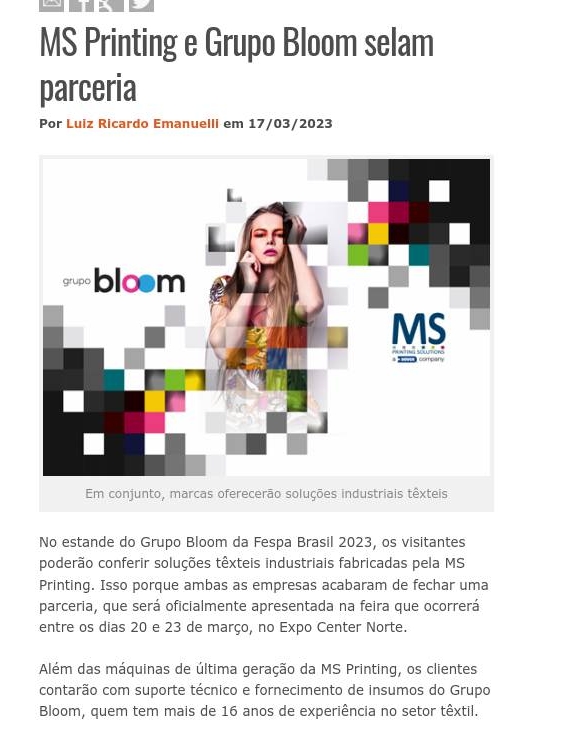 MS Printing e Grupo Bloom apresentam parceria inédita na FESPA Digital Printing 2023
