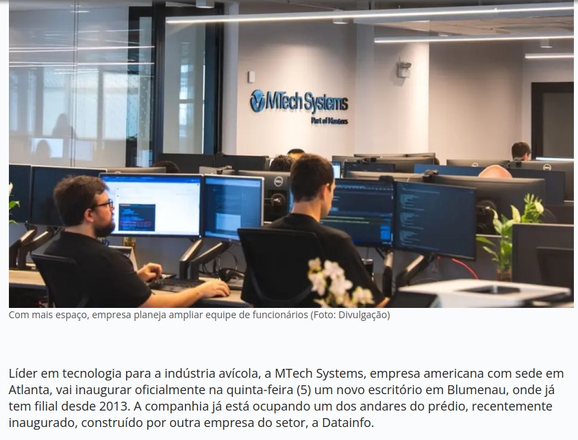 MTech Systems inaugura novo escritório em Blumenau e reforça operação no agronegócio brasileiro