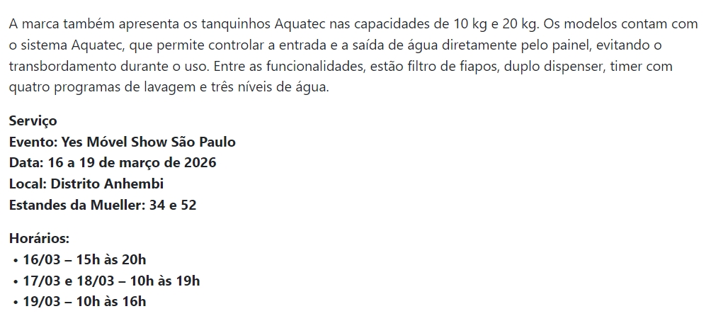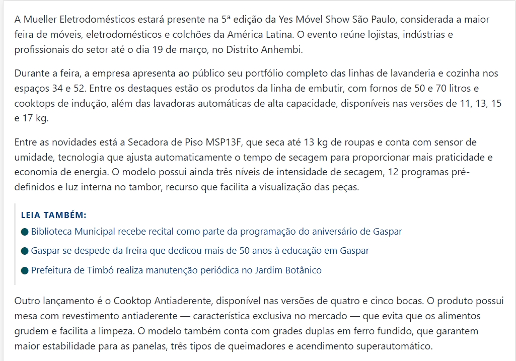 Mueller apresenta novidades em lavanderia e cozinha na Yes Móvel Show - Vale Europeu Notícias