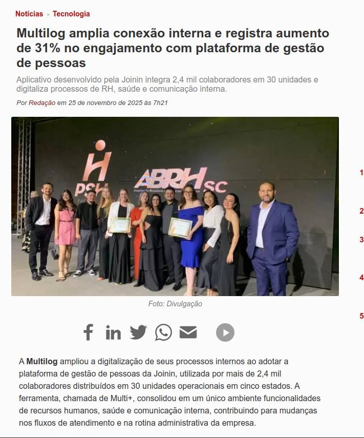Multilog amplia conexão interna e registra aumento de 31% no engajamento com plataforma de gestão de pessoas