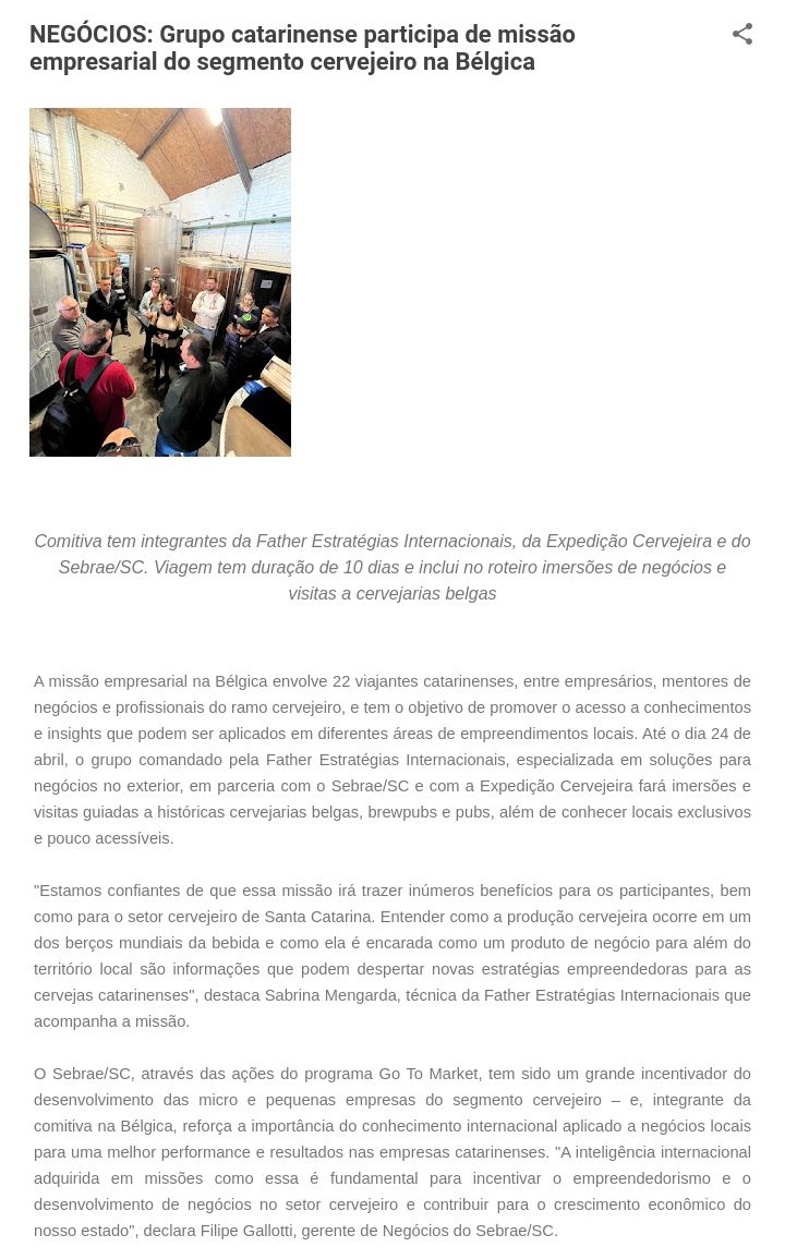 NEGÓCIOS: Grupo catarinense participa de missão empresarial do segmento cervejeiro na Bélgica