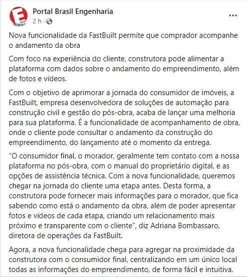 Nova funcionalidade da FastBuilt permite que comprador acompanhe o andamento da obra