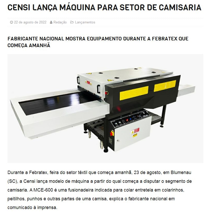 Novo equipamento da Censi Máquinas insere companhia no nicho de camisaria