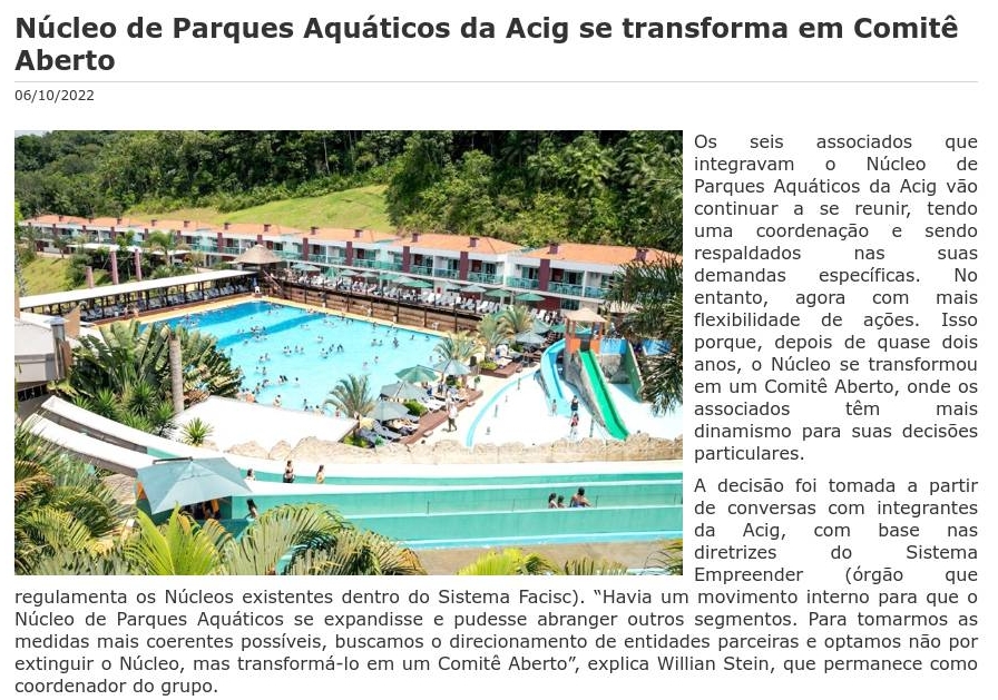 Núcleo de Parques Aquáticos da Acig se transforma em Comitê Aberto - Jornal Cruzeiro do Vale