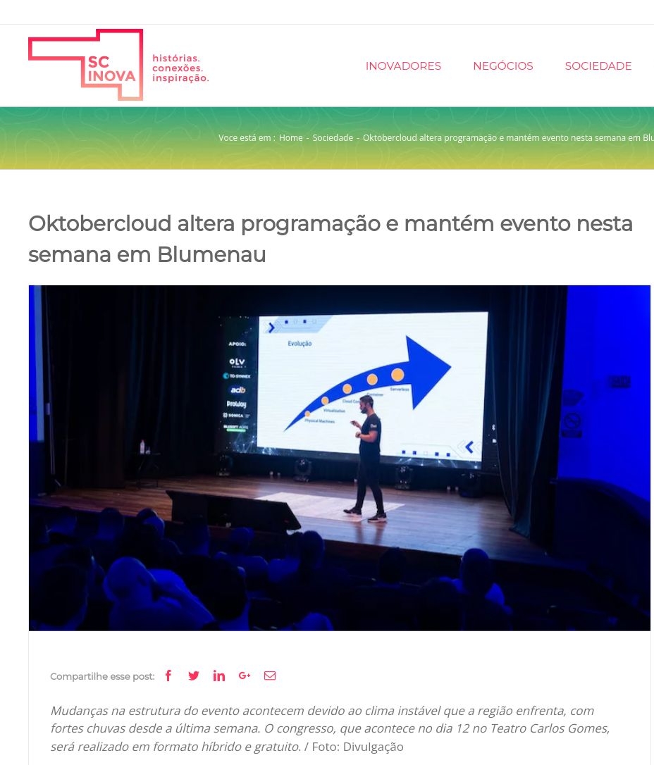 Oktobercloud altera programação e mantém evento nesta semana em Blumenau - SC Inova