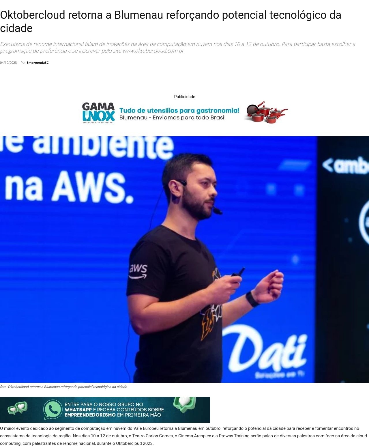 Oktobercloud retorna a Blumenau reforçando potencial tecnológico da cidade