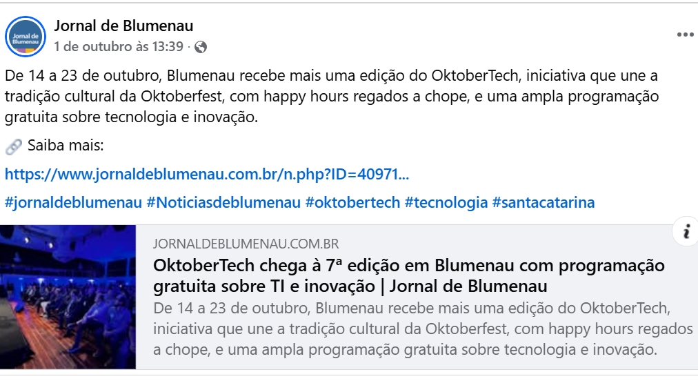 OktoberTech chega à 7ª edição em Blumenau com programação gratuita sobre TI e inovação | Jornal de Blumenau