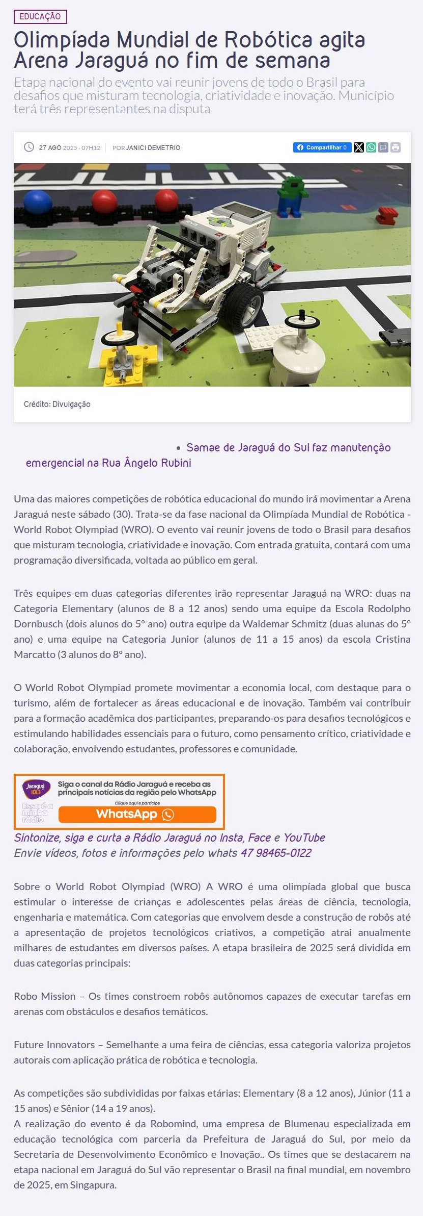 https://www.diariodajaragua.com.br/educacao/olimpiada-mundial-de-robotica-agita-arena-jaragua-no-fim-de-semana/486500