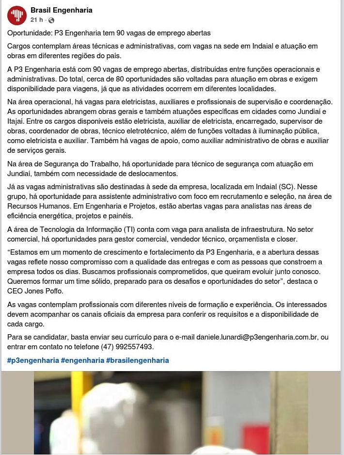 Oportunidade: P3 Engenharia tem 90 vagas de emprego abertas