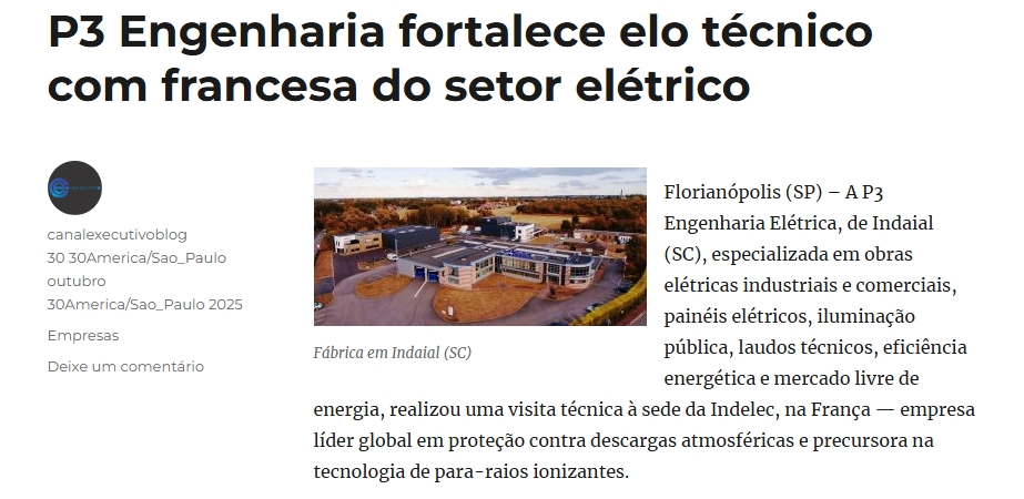 P3 Engenharia fortalece elo técnico com francesa do setor elétrico