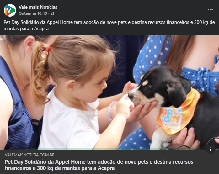 Pet Day Solidário da Appel Home tem adoção de nove pets e destina recursos financeiros e 300 kg de mantas para a Acapra