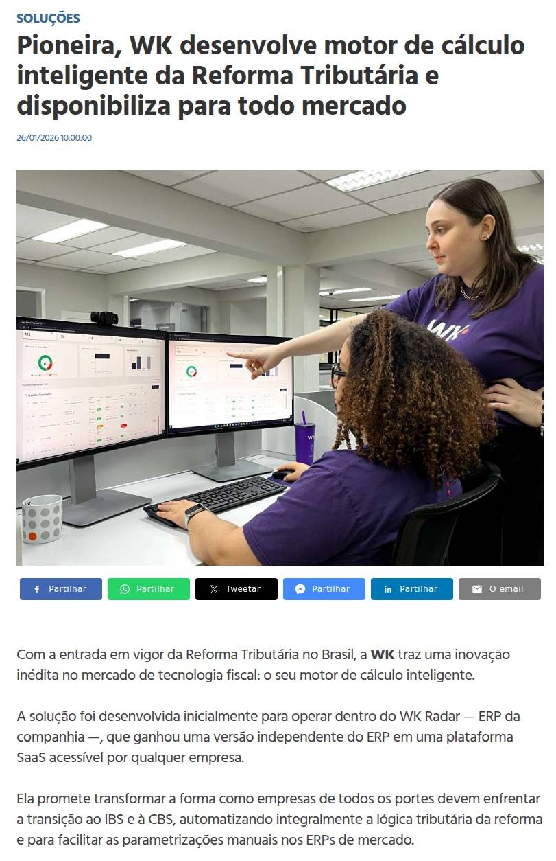 Pioneira, WK desenvolve motor de cálculo inteligente da Reforma Tributária e disponibiliza para todo mercado Jornal de Blumenau