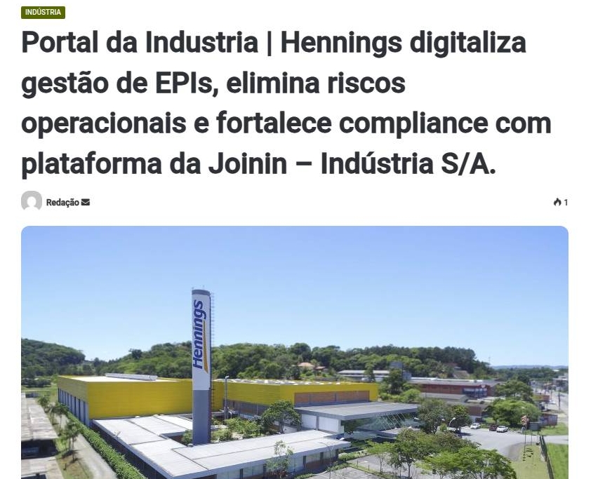 Portal da Industria Hennings digitaliza gestão de EPIs, elimina riscos operacionais e fortalece compliance com plataforma da Joinin