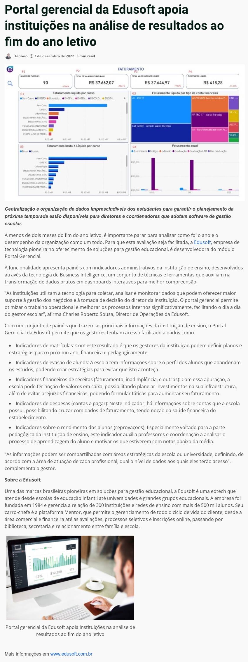 Portal gerencial da Edusoft apoia instituições na análise de resultados ao fim do ano letivo
