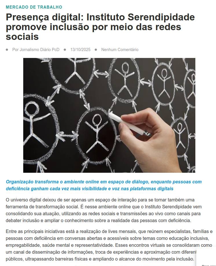 Presença digital: Instituto Serendipidade promove inclusão por meio das redes sociais