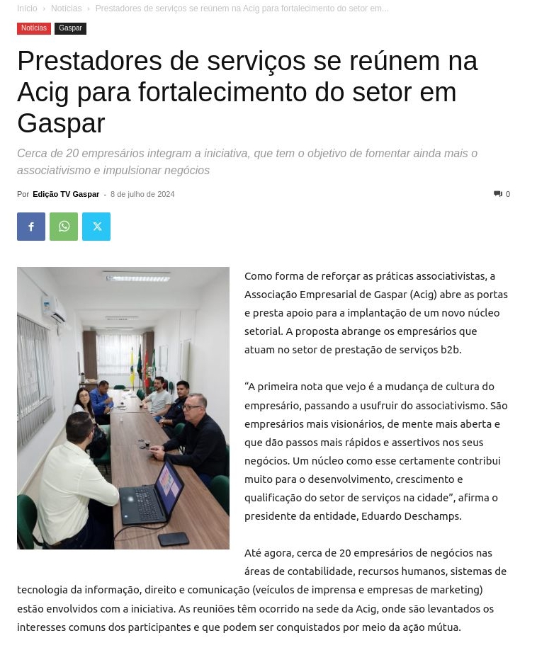 Prestadores de serviços se reúnem na Acig para fortalecimento do setor em Gaspar - TV Gaspar