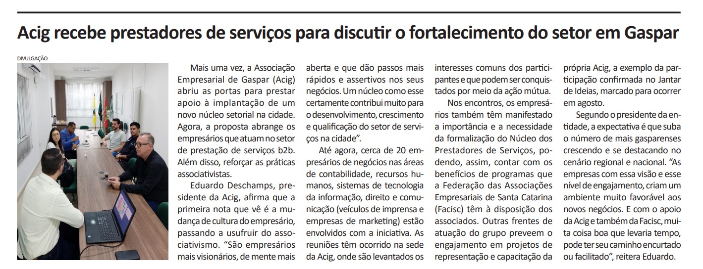 Prestadores de serviços se reúnem na Acig para fortalecimento do setor em Gaspar