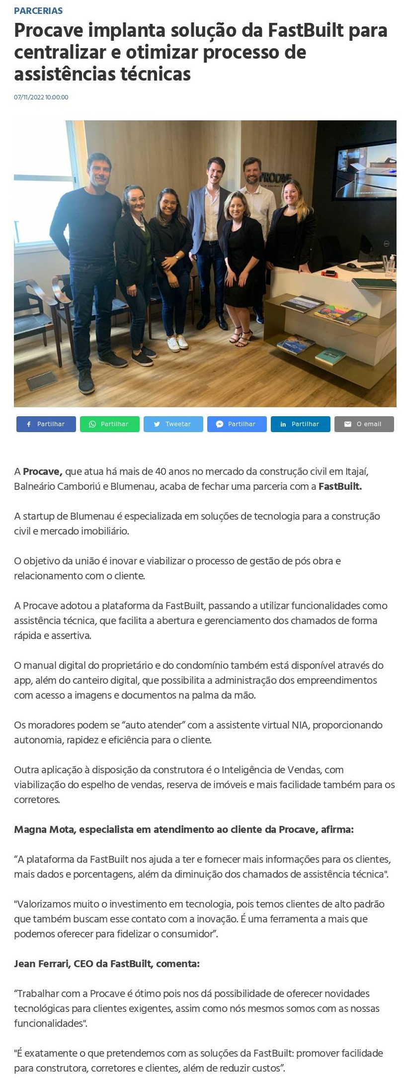 Procave implanta solução da FastBuilt para centralizar e otimizar processo de assistências técnicas | Jornal de Blumenau