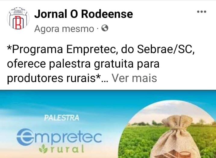Programa Empretec, do Sebrae/SC, oferece palestra gratuita para produtores rurais