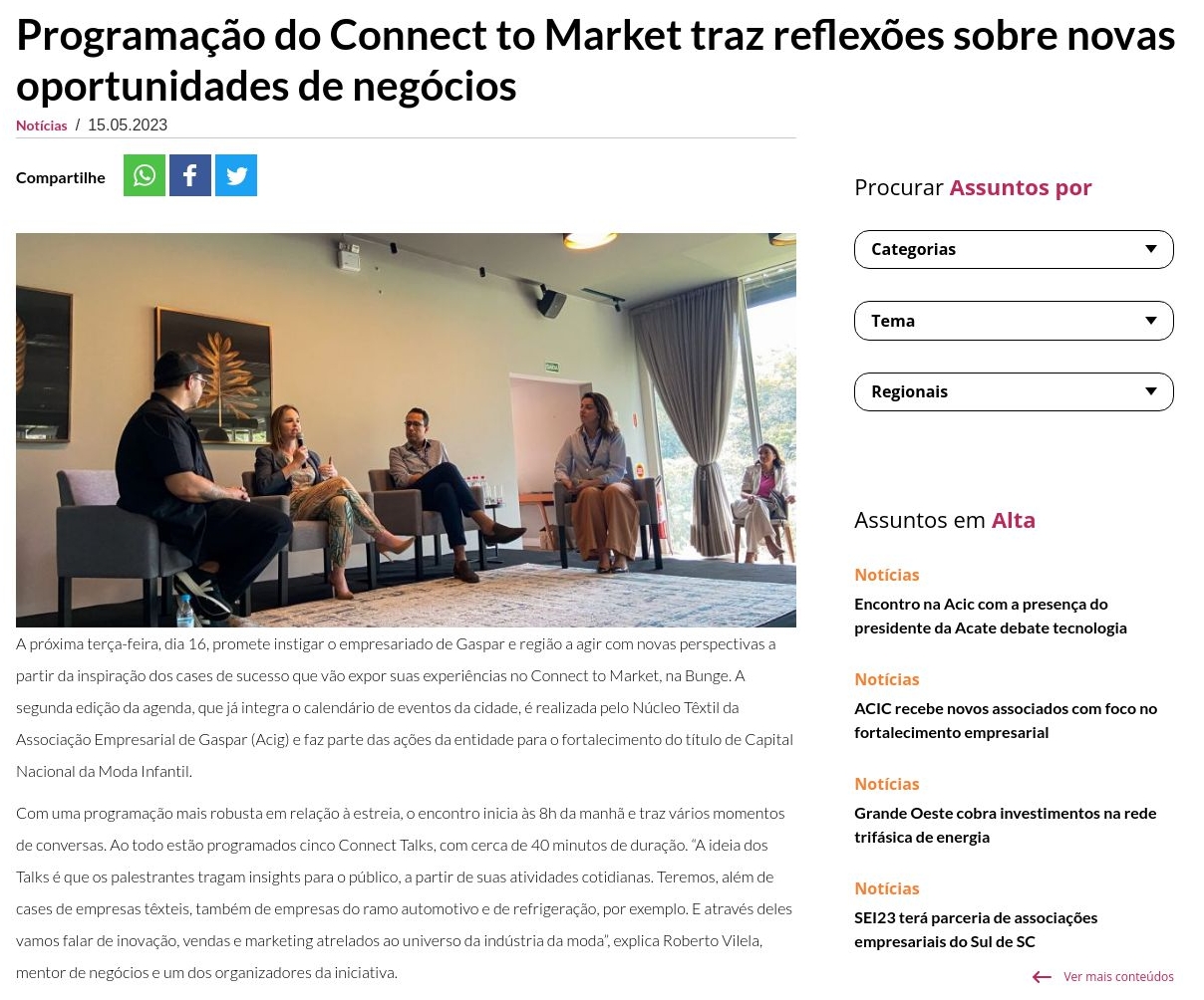 Programação do Connect to Market traz reflexões sobre novas oportunidades de negócios - FACISC - Hub Empresarial Catarinense