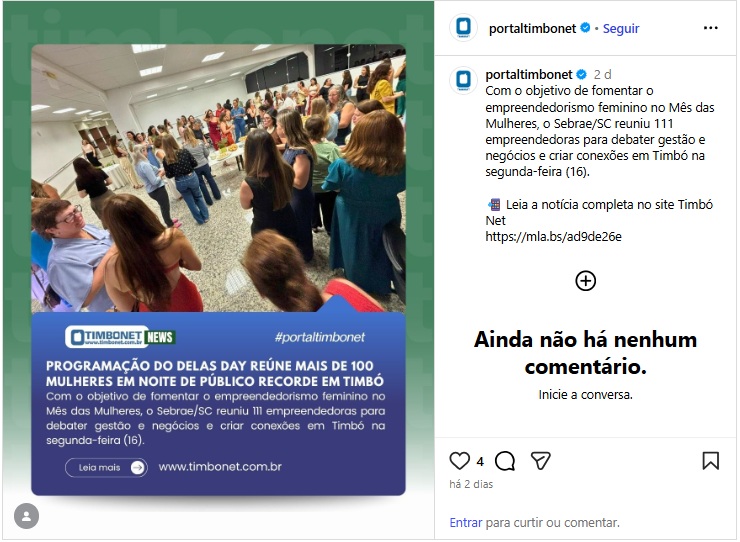 Programação do Delas Day reúne mais de 100 mulheres em noite de público recorde em Timbó