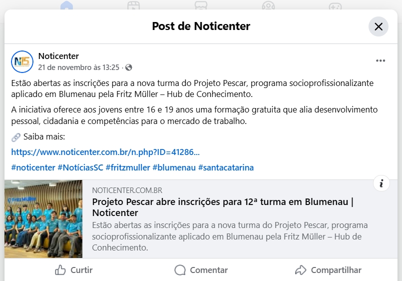 Projeto Pescar abre inscrições para 12ª turma em Blumenau | Noticenter