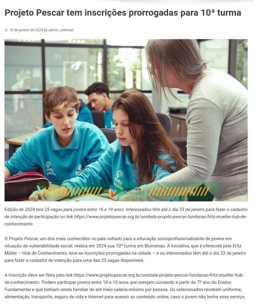 https://valemaisnoticia.com.br/2024/01/18/projeto-pescar-tem-inscricoes-prorrogadas-para-10a-turma