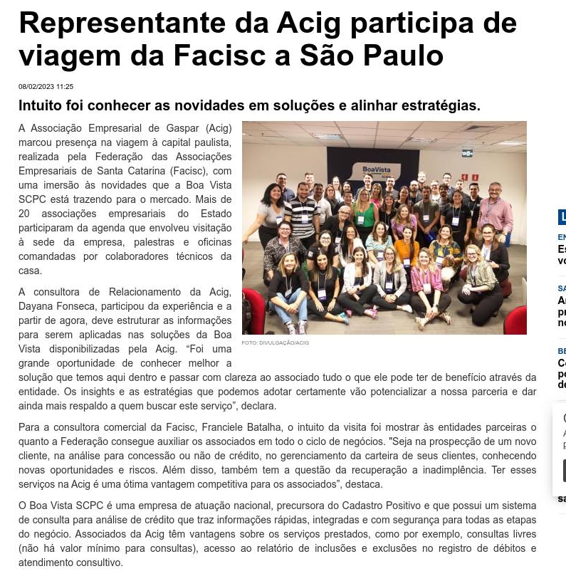 Representante da Acig participa de viagem da Facisc a São Paulo