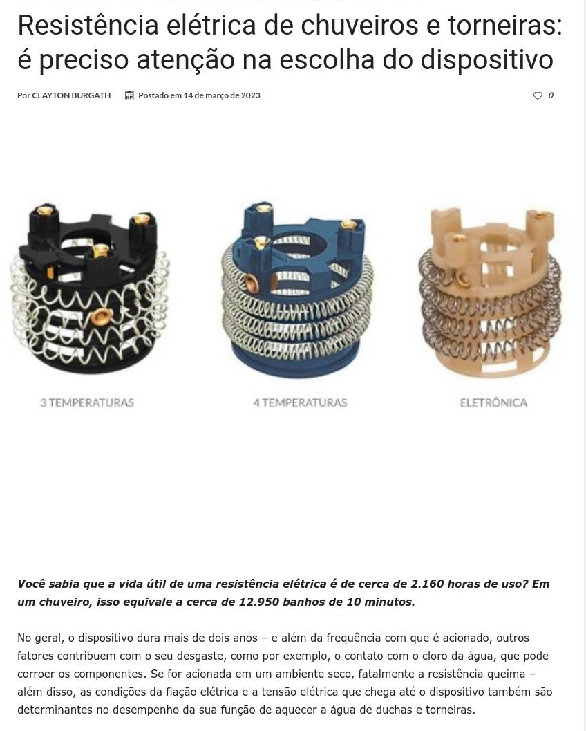 Resistência elétrica de chuveiros e torneiras: é preciso atenção na escolha do dispositivo