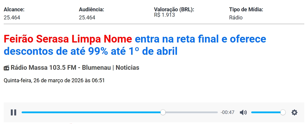 26/03/2026 - Rádio Massa FM