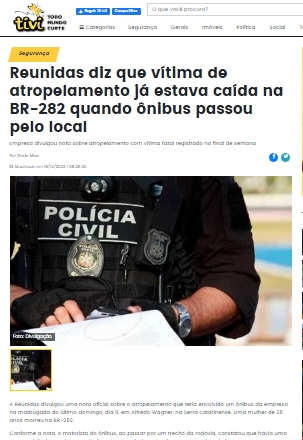 Reunidas diz que vítima de atropelamento já estava caída na BR-282 quando ônibus passou pelo local