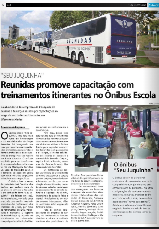 Reunidas promove capacitação dos motoristas com treinamentos itinerantes no Ônibus Escola "Seu Juquinha"