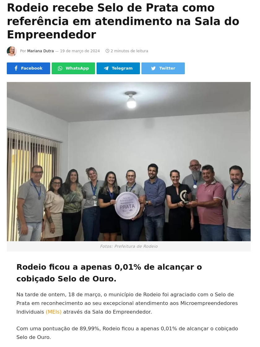 Rodeio recebe Selo de Prata como referência em atendimento na Sala do Empreendedor - Misturebas News
