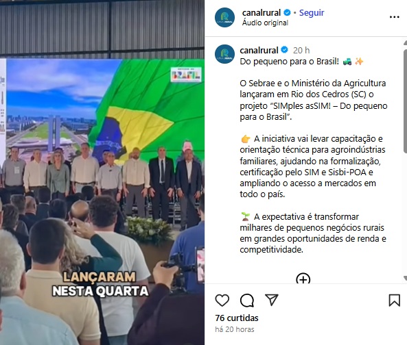 Sebrae e MAPA lançam em SC projeto para acelerar formalização de agroindústrias