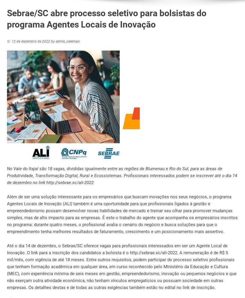 https://valemaisnoticia.com.br/2022/12/12/sebrae-sc-abre-processo-seletivo-para-bolsistas-do-programa-agentes-locais-de-inovacao