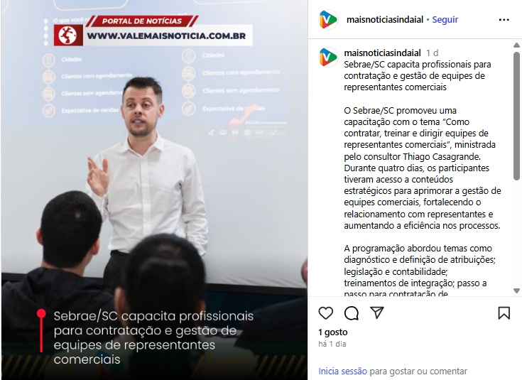 Sebrae/SC capacita profissionais para contratação e gestão de equipes de representantes comerciais