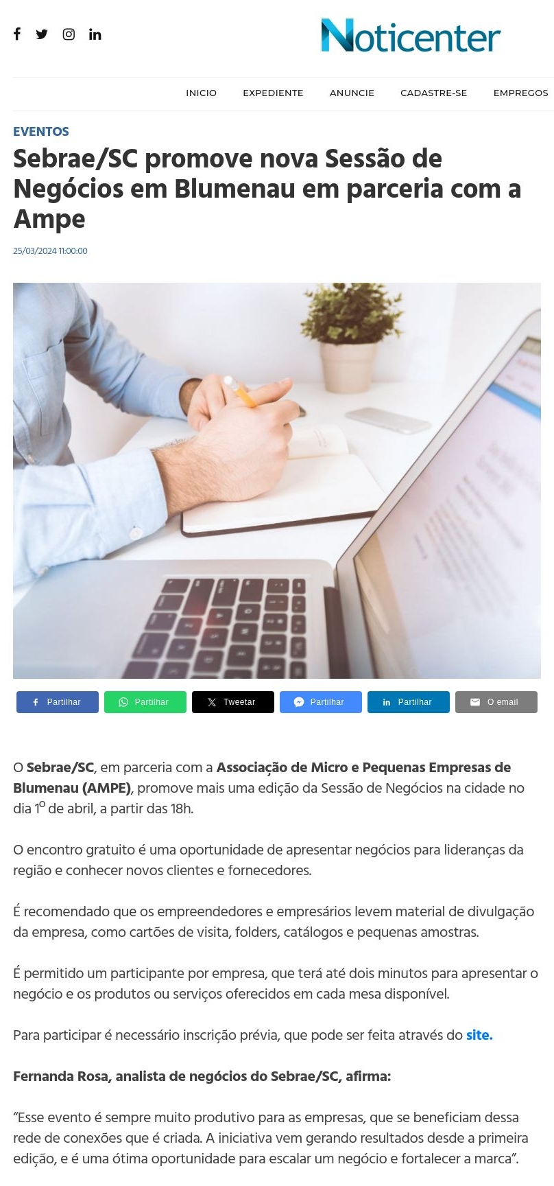 Sebrae/SC promove nova Sessão de Negócios em Blumenau em parceria com a Ampe | Noticenter