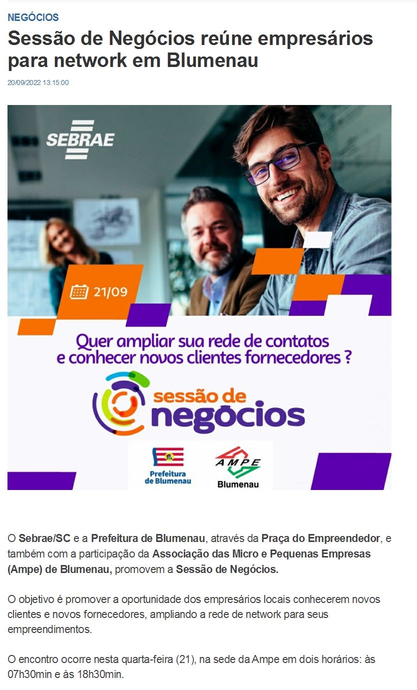 Sessão de Negócios reúne empresários para network em Blumenau | Jornal de Blumenau