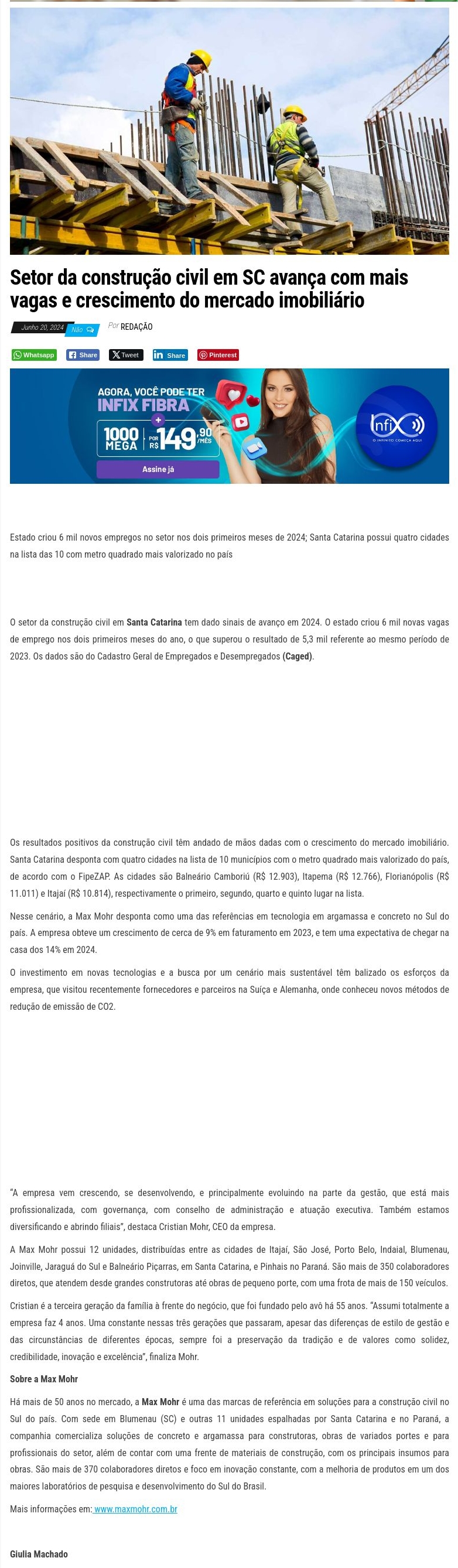 Setor da construção civil em SC avança com mais vagas e crescimento do mercado imobiliário