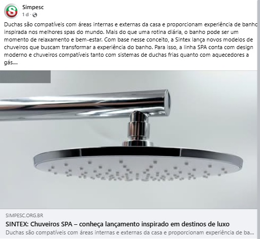 SINTEX: Chuveiros SPA ? conheça lançamento inspirado em destinos de luxo
