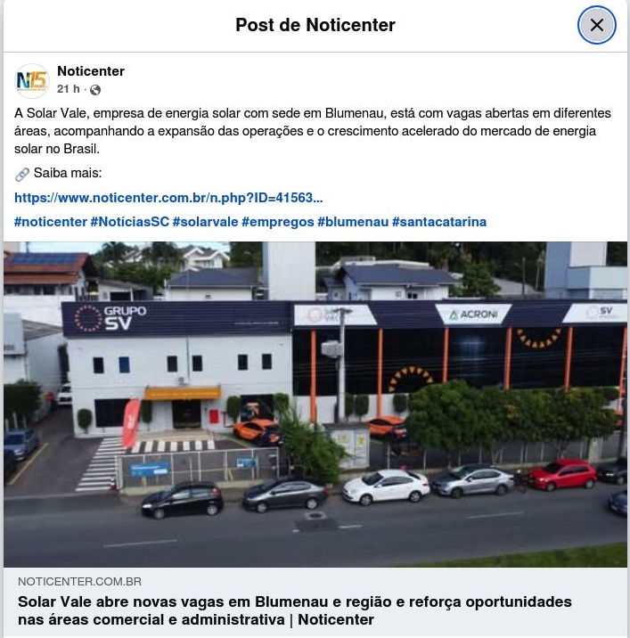 Solar Vale abre novas vagas em Blumenau e região e reforça oportunidades nas áreas comercial e administrativa | Noticenter
