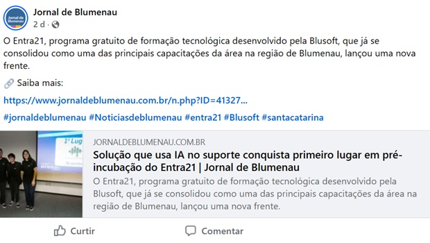 Solução que usa IA no suporte conquista primeiro lugar em pré-incubação do Entra21 | Jornal de Blumenau