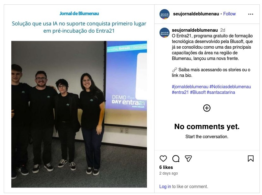 Solução que usa IA no suporte conquista primeiro lugar em pré-incubação do Entra21