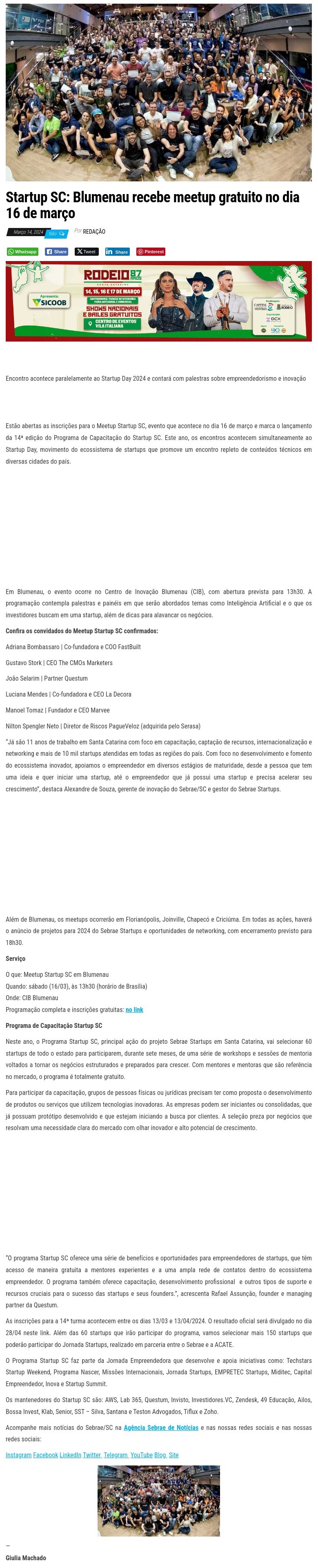 Startup SC: Blumenau recebe meetup gratuito no dia 16 de março
