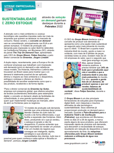 Sustentabilidade e zero estoque através da solução on demand ganham destaque durante a Febratex 2022