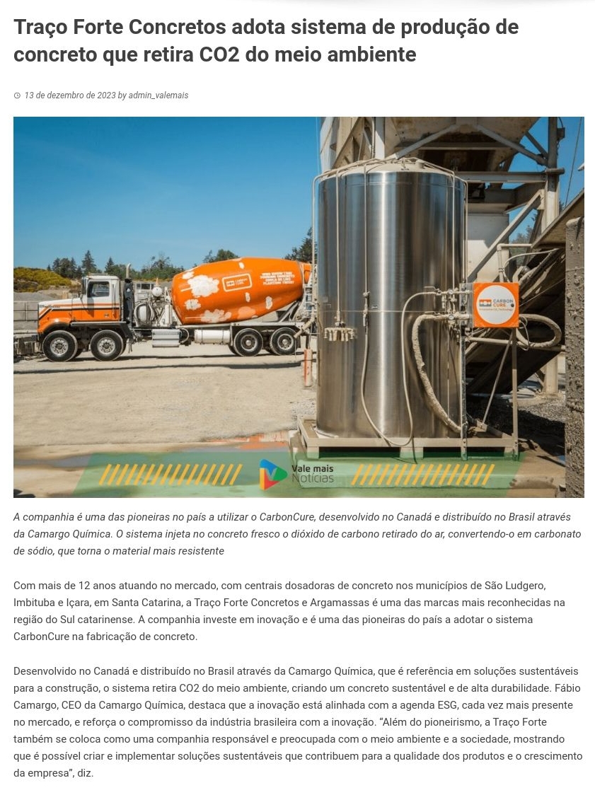 Traço Forte Concretos adota sistema de produção de concreto que retira CO2 do meio ambiente - Vale Mais Notícia