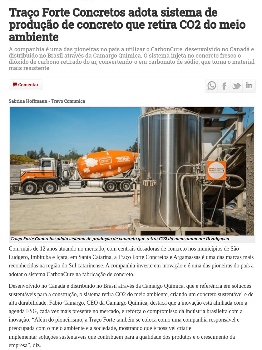 Traço Forte Concretos adota sistema de produção de concreto que retira CO2 do meio ambiente