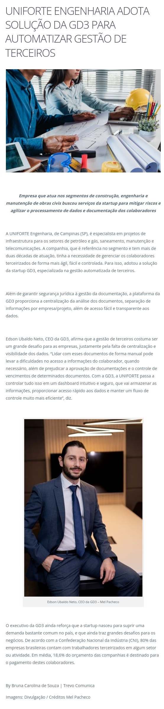 UNIFORTE Engenharia adota solução da GD3 para automatizar gestão de terceiros - Madeira Total