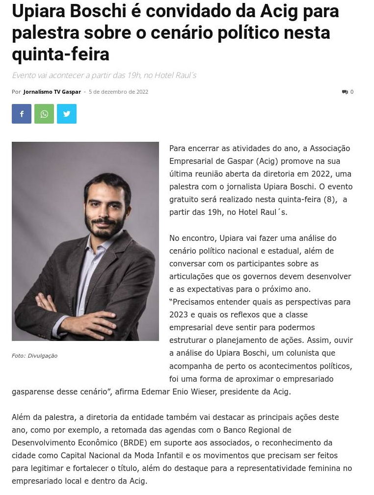 https://tvgaspar.com.br/upiara-boschi-e-convidado-da-acig-para-palestra-sobre-o-cenario-politico-nesta-quinta-feira